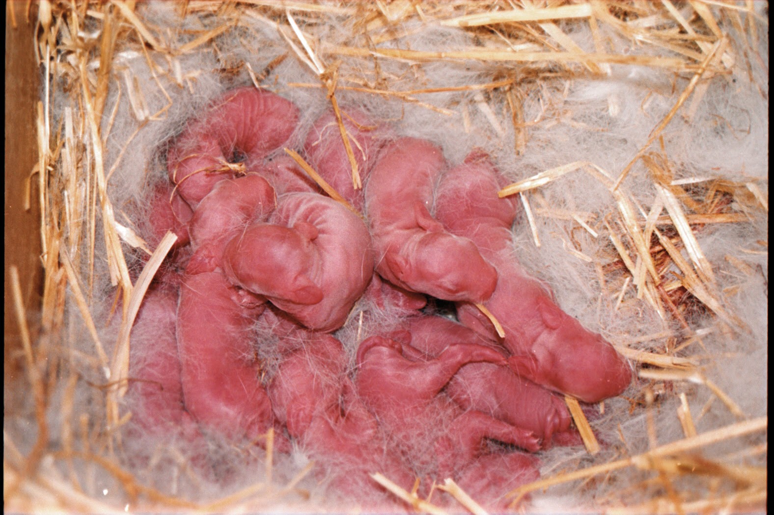 Un nido con los gazapillos recién nacidos. Es vital que la coneja fabrique un nido bien calentito porque sus pequeñuelos no son capaces de controlar su temperatura. Fuente Asescu.